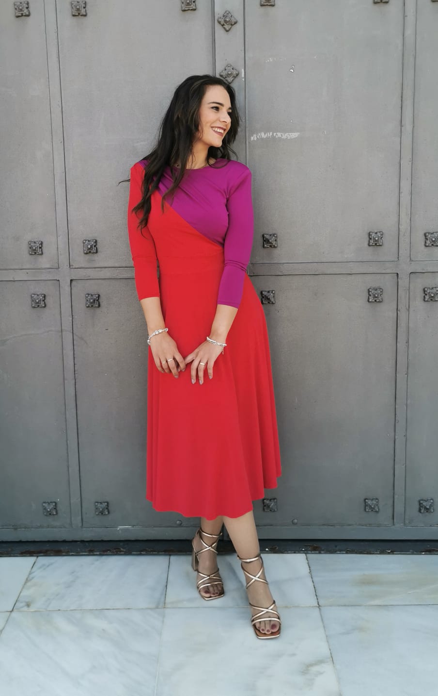 Nuestro elegante y sencillo vestido melissa es ideal para las comuniones y otros eventos que se acercan…Vestido de media manga y bicolor rojo y buganvilla, el mix perfecto. Vestido con una preciosa falda con vuelo ideal para arrasar en la pista de baile!!